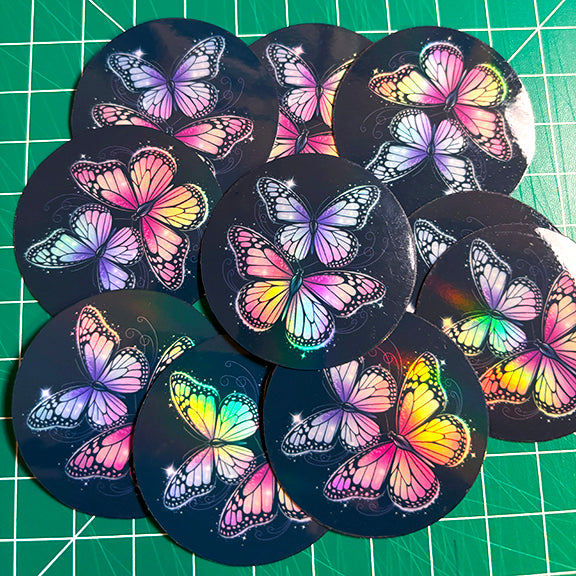 Add a bold, eye-catching effect to your branding with our custom die-cut holographic stickers! Printed on high-quality, weather-resistant vinyl, these stickers feature a shimmering, light-reactive surface that changes color depending on the angle.