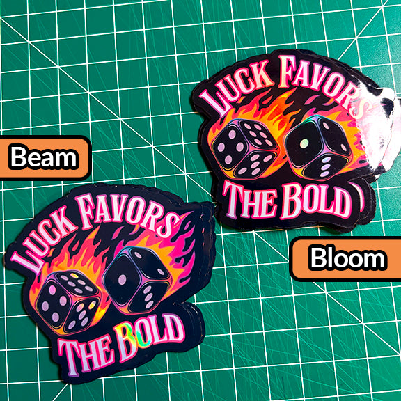 Your design will be printed on top of the holographic base—any white or transparent areas in your artwork will allow the holographic finish to shine through. Solid colors will remain opaque, giving you full creative control over how much sparkle shows in your final design.